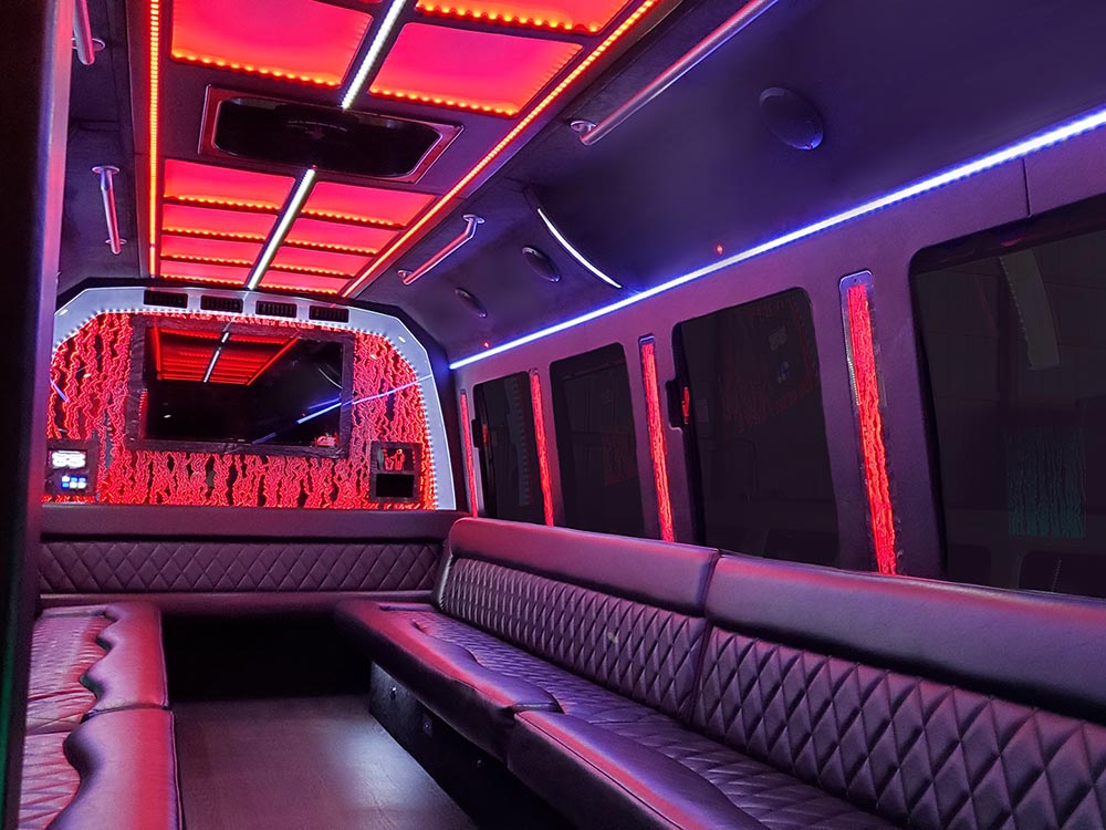 Our 24 Passenger Party Bus delivers a refined and energetic travel experience for mid-sized groups. Designed with comfort and functionality in mind, this vehicle is ideal for coordinated event travel while still providing a lively atmosphere onboard.